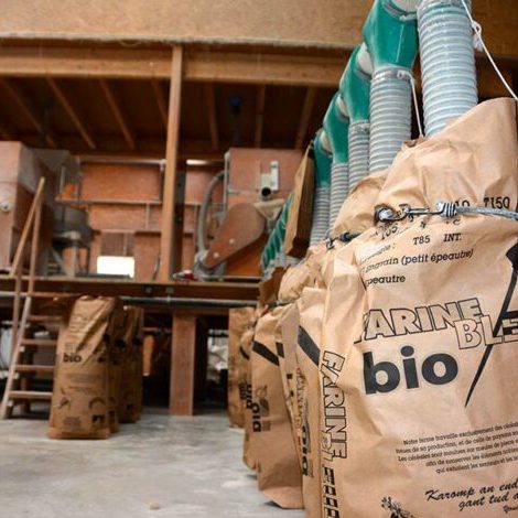 C’est sur une surface de 20 hectares que Pierre-Yves produit en agriculture biologique une partie de ses céréales nécessaires à la fabrication de la farine, puis du pain. En choisissant ce mode de fonctionnement, Pierre-Yves collabore étroitement avec Jonas Le Gall, meunier à Ergué-Gabéric. Pierre-Yves vend sa céréale tandis qu’il achète les farines de Jonas.